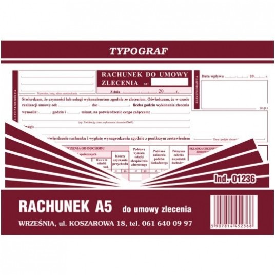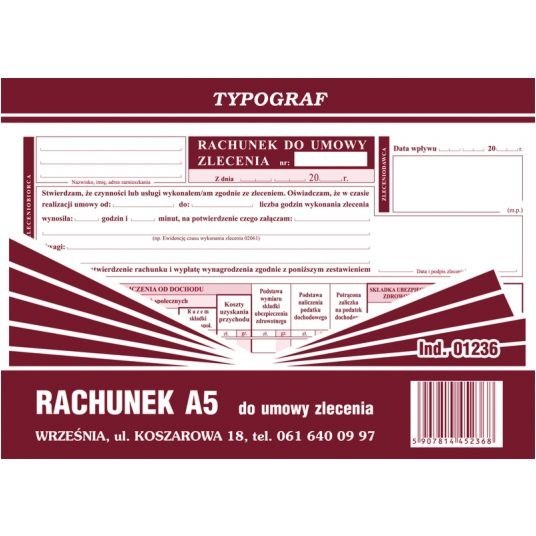 Druk rachunek do umowy zlecenia A5