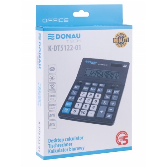 Kalkulator biurowy Donau Tech 12-cyfrowy wyświetlacz 201x155x35mm czarny