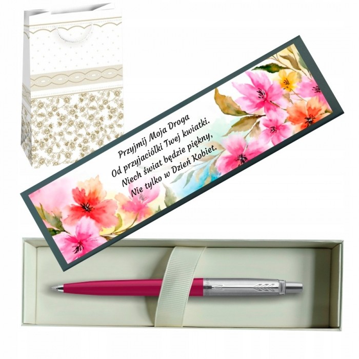 Zestaw prezentowy długopis Parker Jotter malinowy z grawerem na Dzień Kobiet