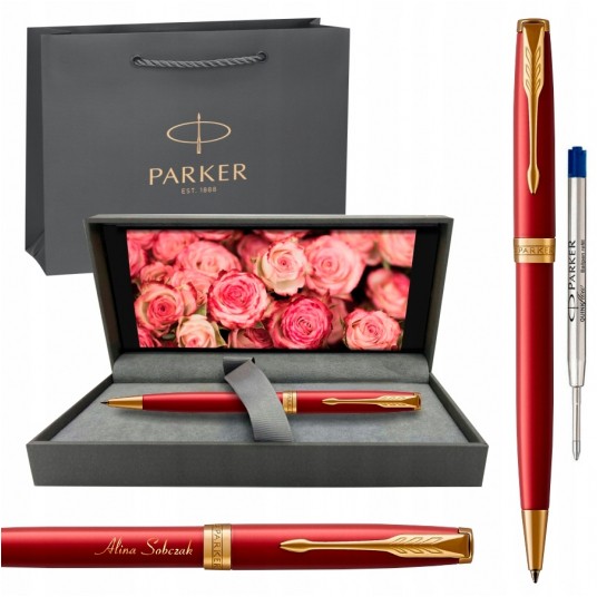 Zestaw prezentowy długopis Parker Sonnet Red Lacquer GT z grawerem na Dzień Kobiet