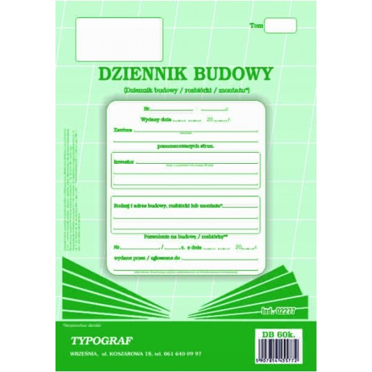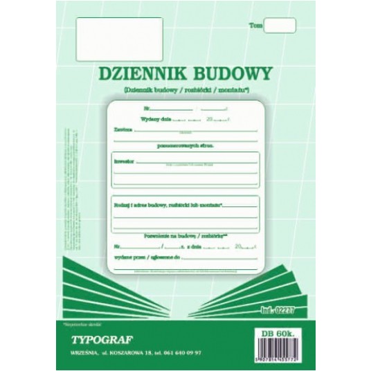 Druk dziennik budowy 60 kartek Typograf