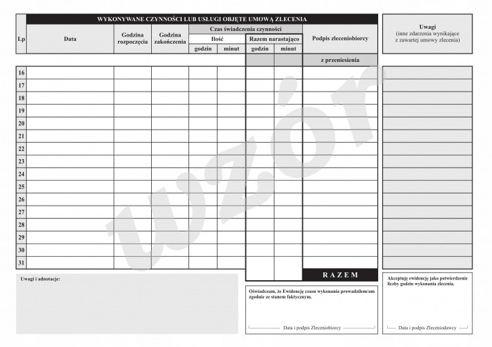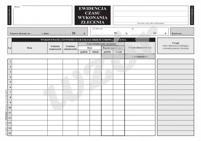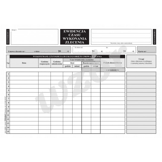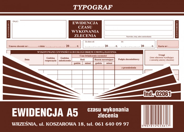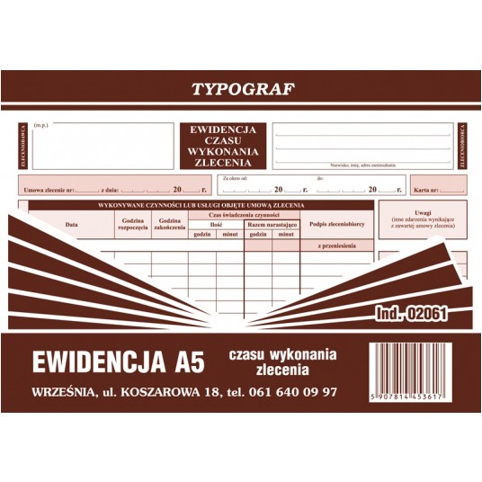 Druk ewidencja czasu wykonania zlecenia A5 40 kartek