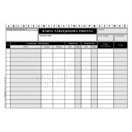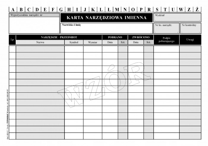 Druk karta narzędziowa imienna A5 50 sztuk