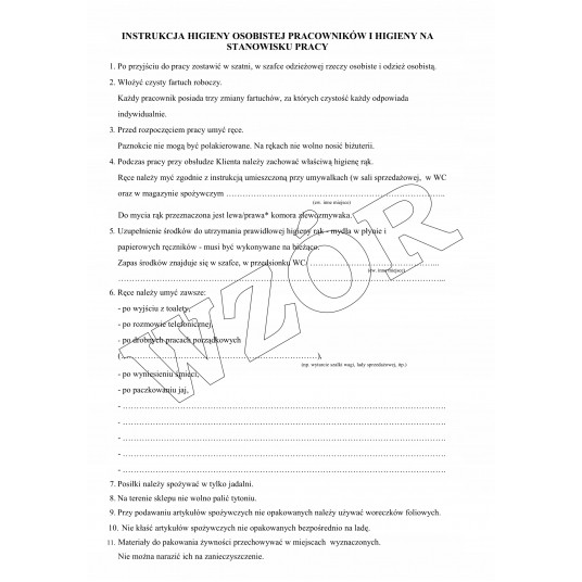 Druk dokumentacja sanitarna według zasad dobrej praktyki higienicznej - sklep spożywczy A4 Typograf