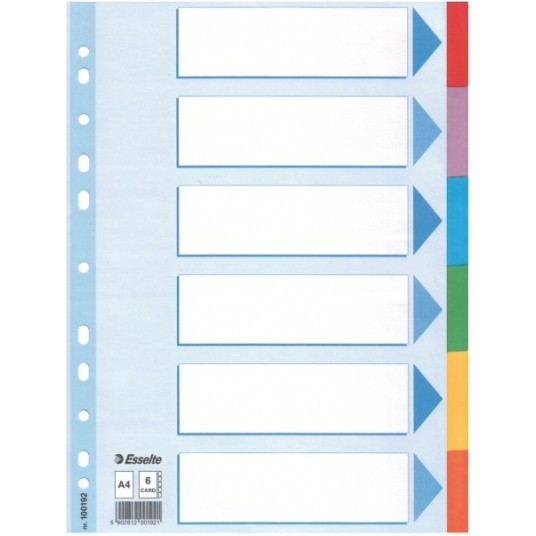 Przekładki Esselte z kolorowego kartonu, A4, wielobarwne