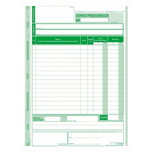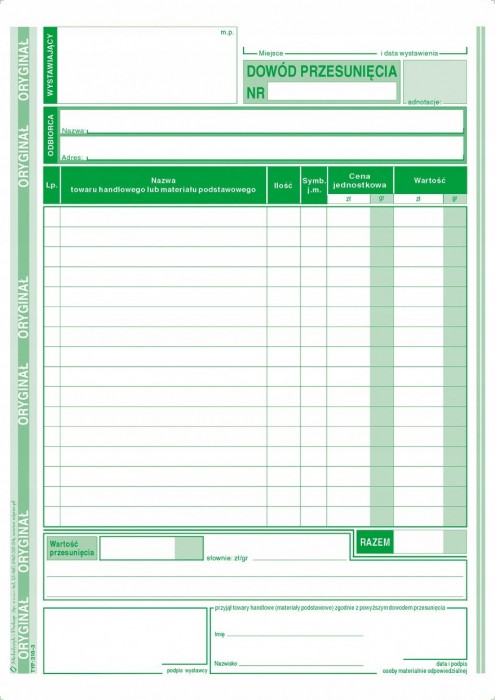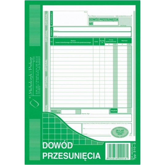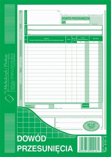 Druk dowód przesuniecia A5 M&P