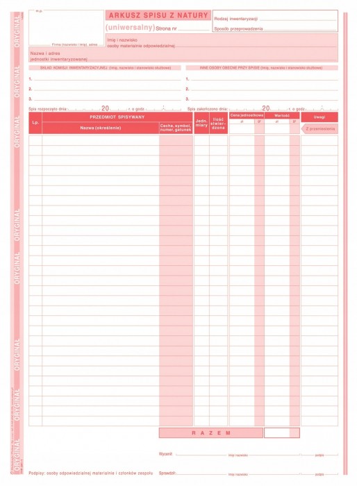 Druk arkusz spisu z natury 1+1 M&P
