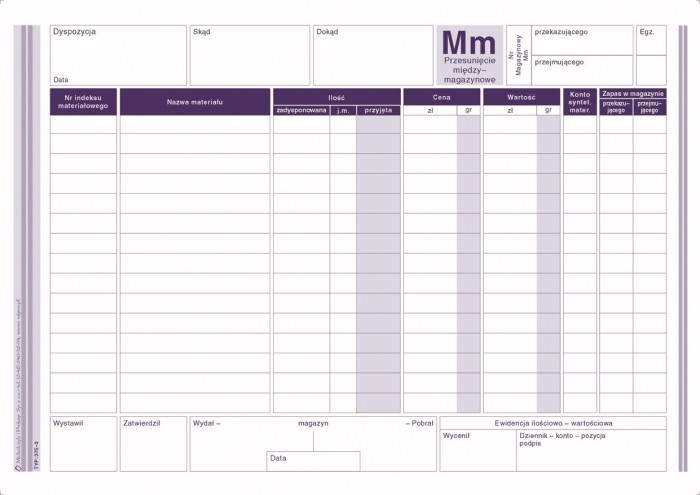 Druk mm przesunięcie magazynowe A5 M&P