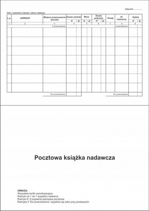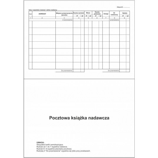 Druk pocztowa ksiażka nadawacza A5 wielokopia