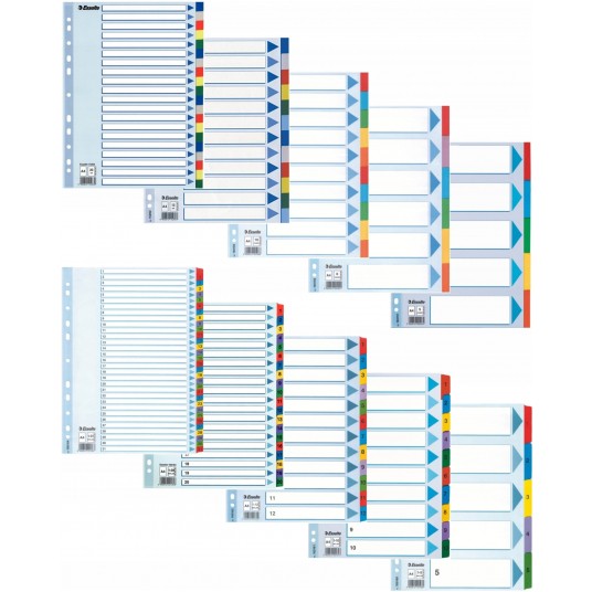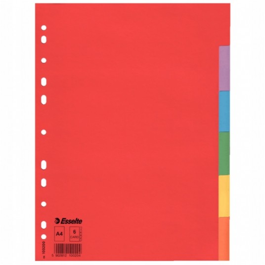 Przekładki Esselte z kolorowego kartonu, A4, wielobarwne