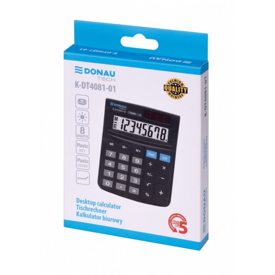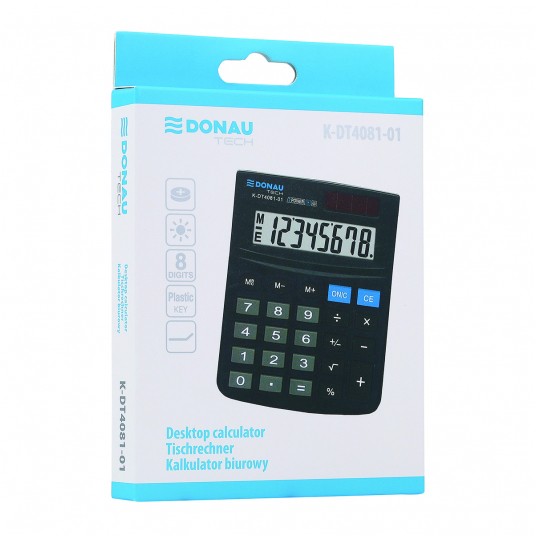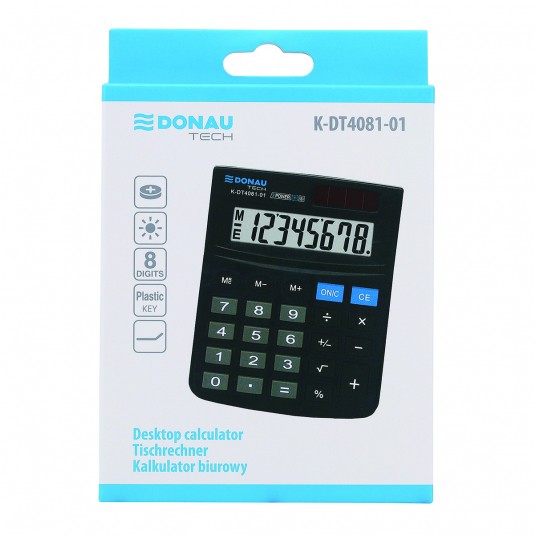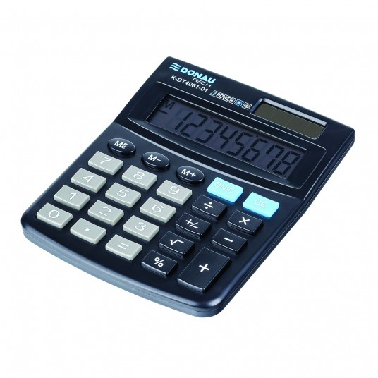Kalkulator biurowy DONAU TECH, CI-SDC805NR, 8-cyfr. wyświetlacz, wym. 130x104x19 mm, czarny