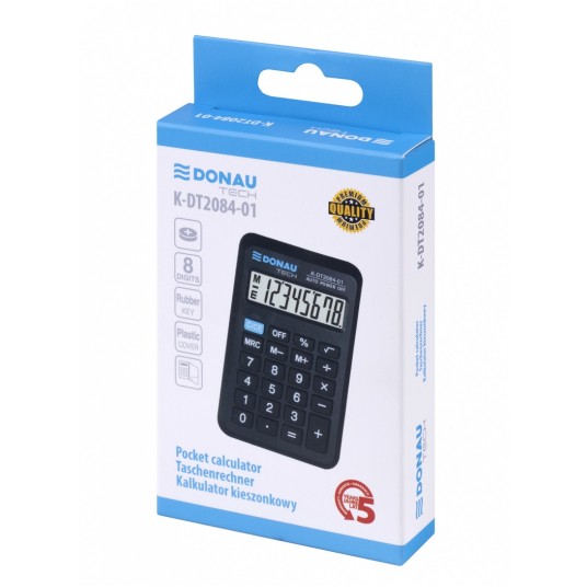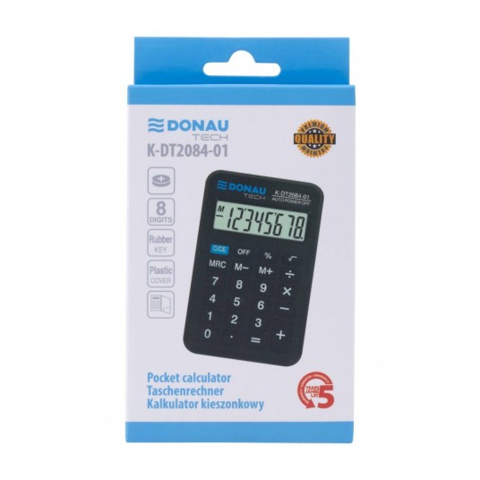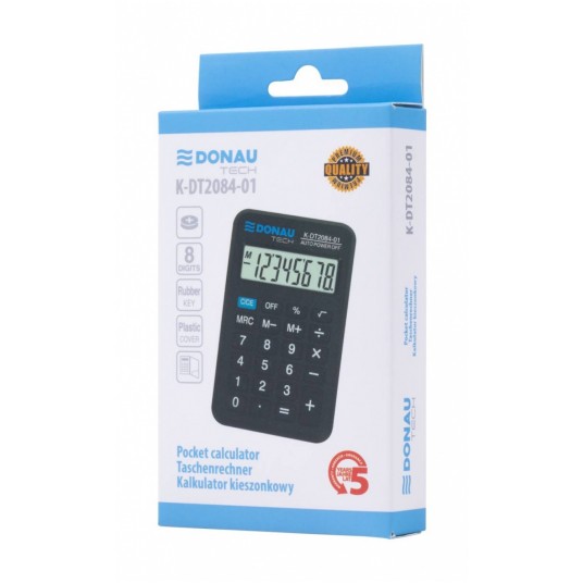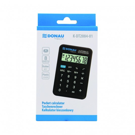 Kalkulator kieszonkowy DONAU TECH, CI-LC210NR, 8-cyfr. wyświetlacz, wym. 97x62x11 mm, czarny