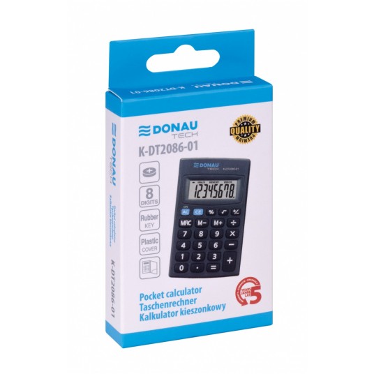 Kalkulator kieszonkowy DONAU TECH, 8-cyfr. wyświetlacz, wym. 85x56x9 mm, czarny