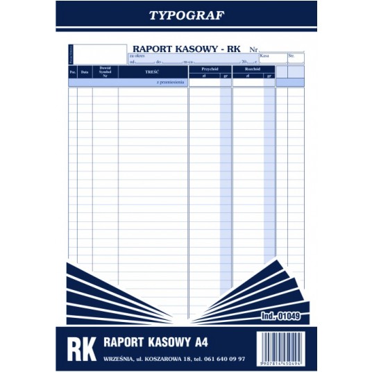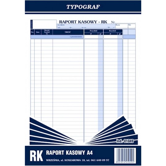 Druk raport kasowy A4 Typograf