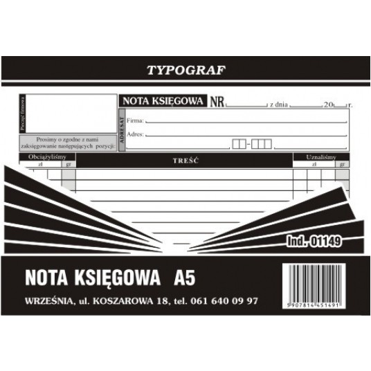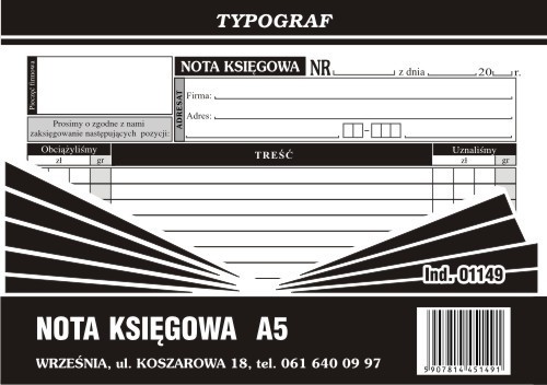 Druk nota księgowa A5